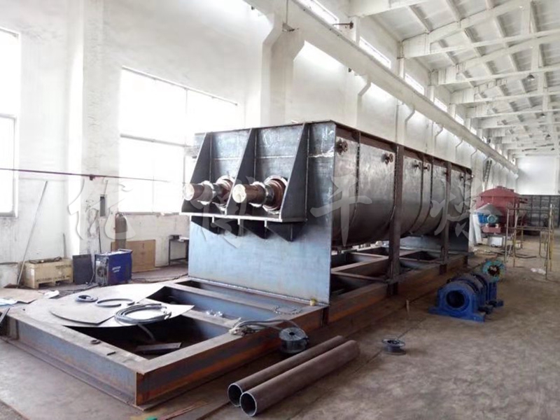污泥菌渣用桨叶干燥机是一种以热传导为主的卧式搅拌干燥机,经济环保,热量利用率高。空心轴上密集排列着楔型中空桨叶,热介质经空心轴流经浆叶且传热桨叶具备自清洁功能,大大提升传热面积及传热效率。热介质可用水蒸汽、导热油等。间接传导加热,热量损失仅为通过器体保温层向环境的散热。可对膏状、颗粒状、粉状、浆状物料间接加热或冷却,可完成干燥、冷却、加热、灭菌、反应、低温燃烧等单元操作。