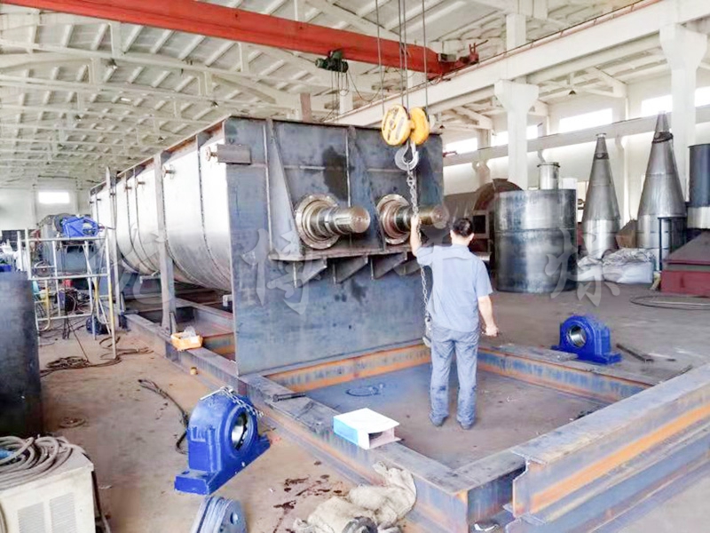 污泥菌渣用桨叶干燥机是一种以热传导为主的卧式搅拌干燥机,经济环保,热量利用率高。空心轴上密集排列着楔型中空桨叶,热介质经空心轴流经浆叶且传热桨叶具备自清洁功能,大大提升传热面积及传热效率。热介质可用水蒸汽、导热油等。间接传导加热,热量损失仅为通过器体保温层向环境的散热。可对膏状、颗粒状、粉状、浆状物料间接加热或冷却,可完成干燥、冷却、加热、灭菌、反应、低温燃烧等单元操作。